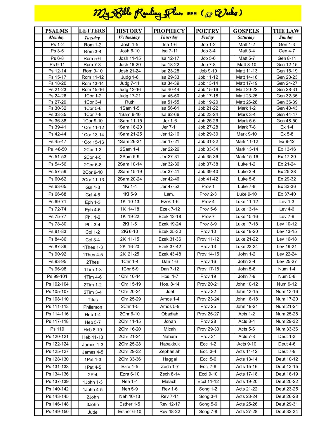 52 Week Bible Reading Plan Printable