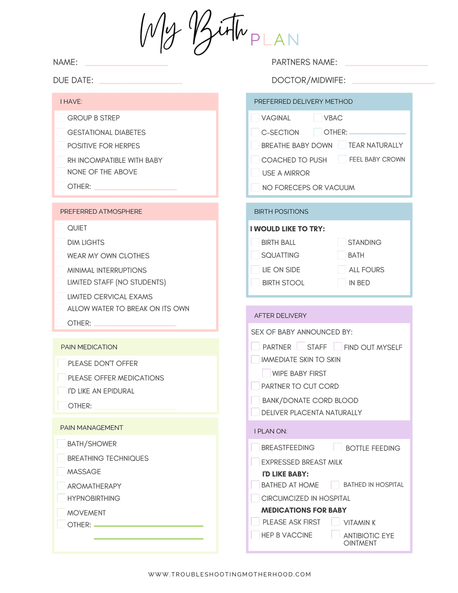 Printable Birth Plan Checklist Troubleshooting Motherhood