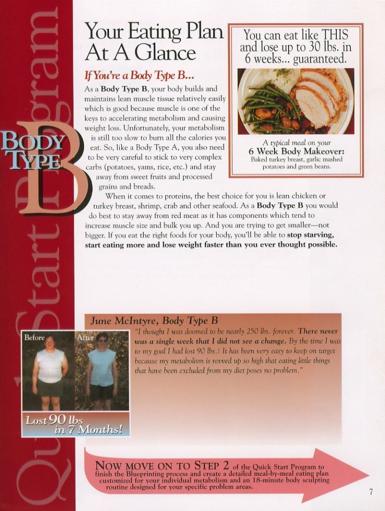 Printable 6 Week Body Makeover Type A Meal Plan