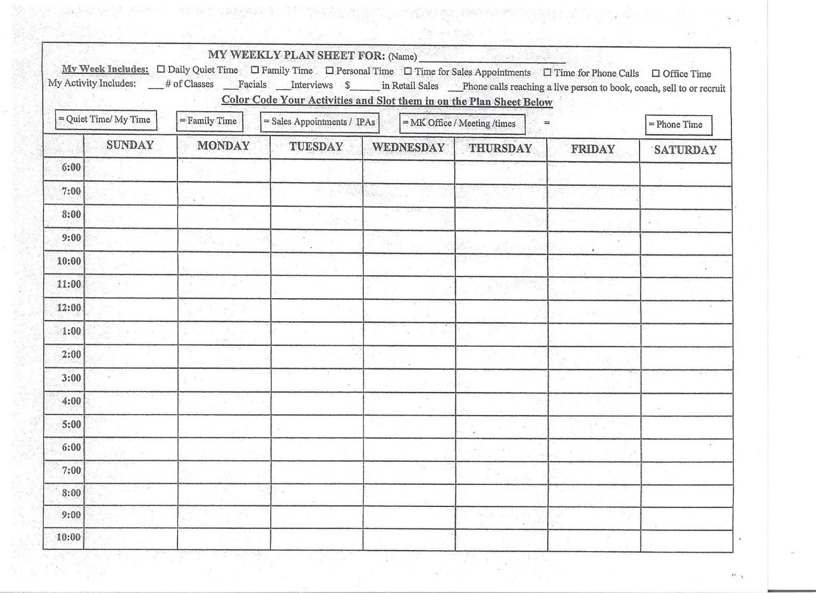 Printable Mary Kay Weekly Plan Sheet Printable Word Searches